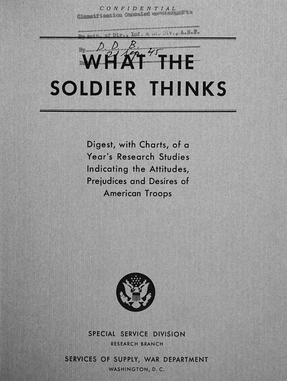 No different from what I hear from folks who spent time in Iraq or Afghanistan, these soldiers did not have strong feelings about their allied or enemy nations or their civilian populations. Even after the war in Europe was over, for instance, about half of the fighting men surveyed expressed no strong feelings against the German public who, like their families at home, comprised the war machine, busily manufacturing the ships, tanks, and planes and the ammunition chewing through all their friends. More than that, almost 30% reported having no feelings even about the Nazis they were directly fighting. They were even sympathetic to their situation, reporting feeling they were “like us” and only doing what their country called upon them to do. Soldiers did not appear to think very highly of their European allies, however, expressing their concern that with the immediate threat at home extinguished they would likely fail to reciprocate America’s efforts against German aggression and provide no aid in the battle against the Japanese. Too, again to my surprise, those serving in battle also tended to express much disdain for those at home who are not, even those they knew were deemed unfit.